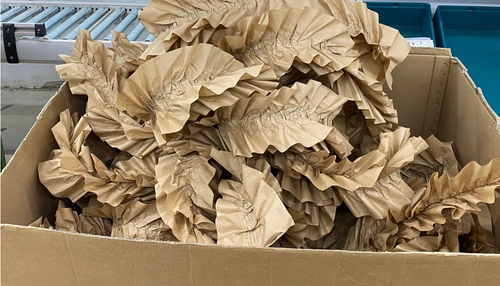 Goodbye, bubble wrap! We also want to do without plastic in the packaging of our products as much as possible. We therefore use filling material made of recycled cardboard.