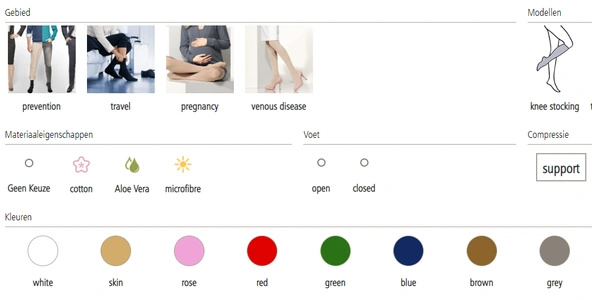 U heeft nieuwe compressiekousen nodig, maar weet niet welke kleuren beschikbaar zijn? De volgende langeafstandsvlucht komt eraan en u wilt zware benen voorkomen? Met onze Productvinder vindt u snel de juiste kous. Waar u onze producten kunt kopen en of er een Ofa leverancier bij u in de buurt is, kunt u via Verkooppunten achterhalen.